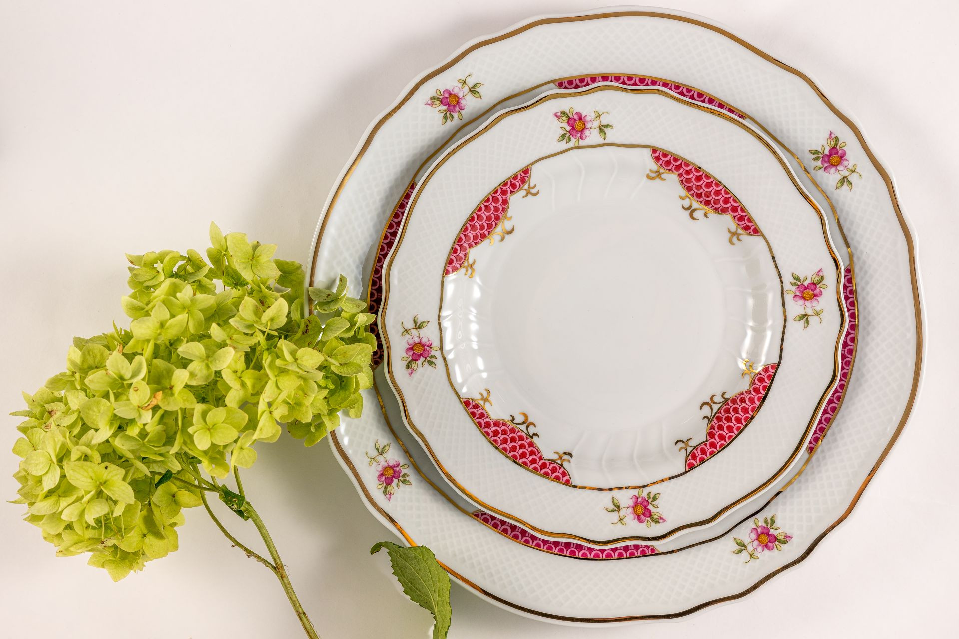 The Henriett collection provides a charming appearance with its elegant pink and burgundy tones and prominent flower patterns, which are complemented by hand-painted 21 carat gilding. Henriett is a stunning decoration for festive tables and a radiant accessory for special occasions.