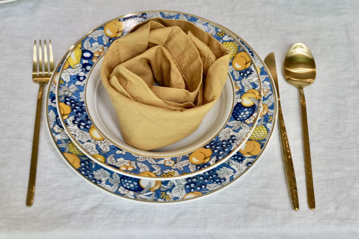 A kék, sárga, narancs és arany színekben tündöklő gyümölcsmotívumok teszik igazán részletgazdaggá ezt az asztalterítéket. A kollekció Szakmáry Károly tiszteletére kapta a No. 939 elnevezést. Szakmáry ugyanis 1939-ben lett Hollóházán igazgató, és vezetése alatt élte második aranykorát a gyár. A „Gyümölcsös” melléknév pedig nem lehetett kérdés, köszönhetően az életteli mintázatnak. A vidám nyarat, bőséget és egészséget magában rejtő mintázat a kézzel festett 21 karátos aranyozással kedvelt eleme lehet nyaralóknak, kerti eseményeknek és az ünnepi asztaloknak is.